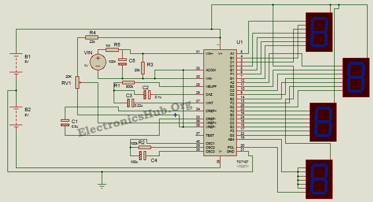 Digital Voltmeter Circuit Diagram using ICL7107: